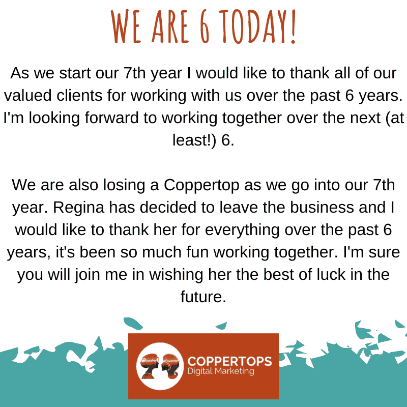 This gives me a great opportunity to thank all of our amazing clients for working with us over the past 6 years, hopefully we will work together for many more. It has been such a pleasure seeing your businesses grow and feeling like we are a small part of helping to make that happen for you.