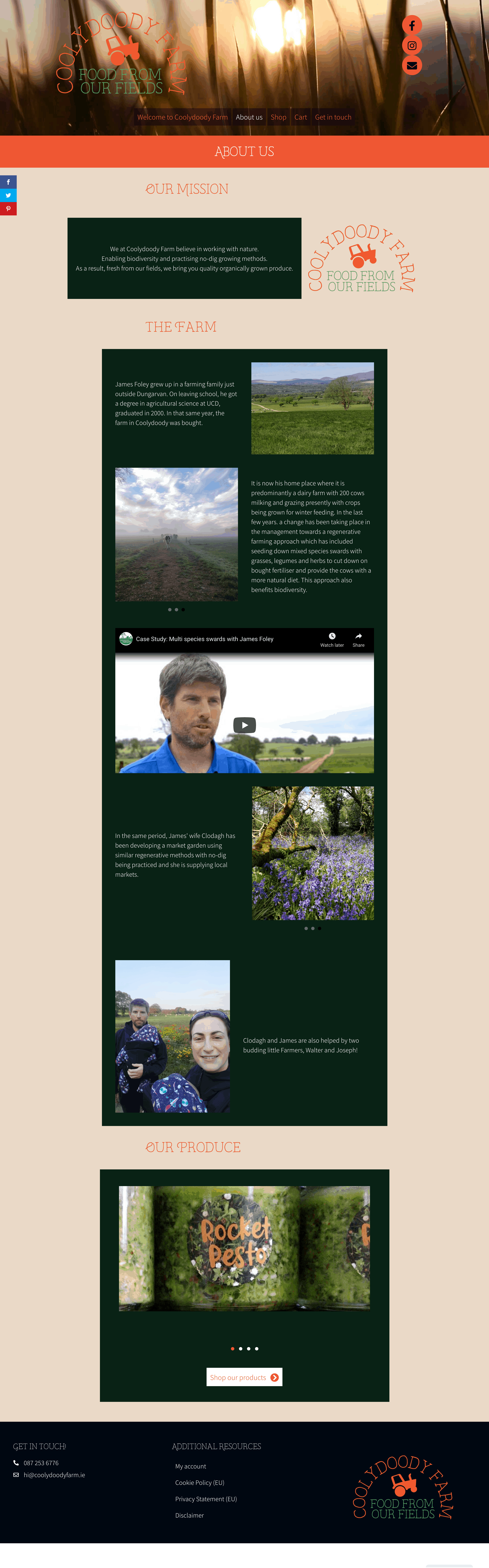 Ciara took lead on this project, creating a lovely design with a simple layout that is easy to use and allows customers to purchase the gorgeous produce online. It is important for a business like Coolydoody Farm that website visitors get a feel for the business owners and their story, and this site portrays who the Foleys are with warmth and personality.