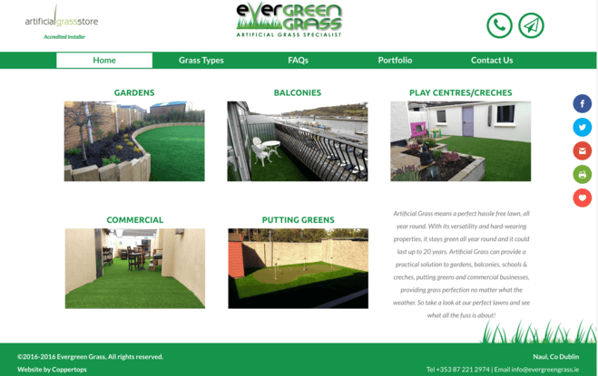 The website we designed for Evergreen Grass is a five page, fully responsive site. We used a gallery on the home page with photos of the grass used in various venues including gardens, balconies, business premises and even putting greens. These images are then linked to the full portfolio including striking before and after photos.
