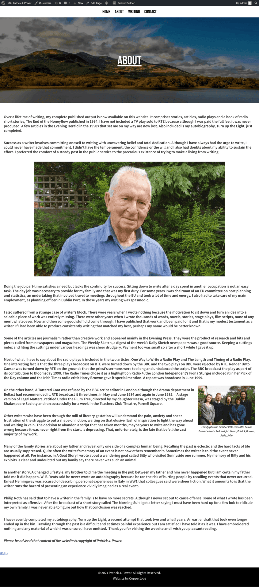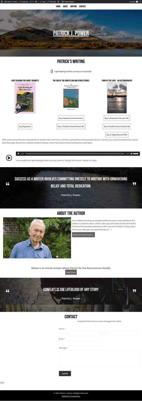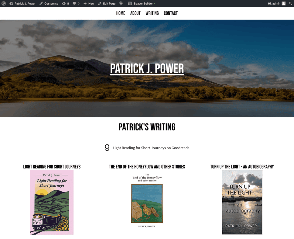 This was an emotional one. We were working with Nessa, Patrick's daughter, to improve the website and sell Patrick's books. Patrick died earlier this year and we know that focussing on promoting his writing has given Nessa some comfort during this difficult time.